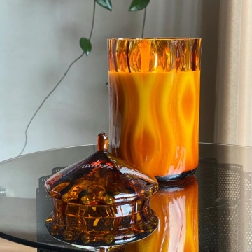 Objednávat levné skleněné dózy z Aliexpresu není náš styl. Od začátku bylo jasné, že musíme najít sklárnu, která do toho s námi půjde a protože půjde o limitovaný počet pár kusů, bude to ruční výroba. Domluvili jsme se s českou sklárnou Května, která dostala zadání vyrobit luxusní svíčku s víčkem, aby do hoření mohla sloužit jako váza nebo dóza, třeba na sušenky. Objekt, který bude krásný sám o sobě, když bude stát v prostoru vašeho domova. A myslím, že se nám to nakonec povedlo.